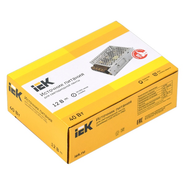 • Драйвер для светодиодной ленты ИЭК LED ИПСН-PRO 40Вт 12 В блок - клеммы IP20