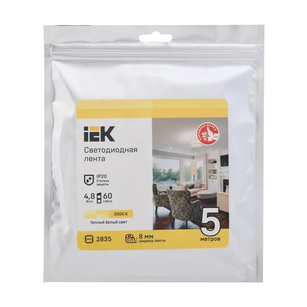 • Лента светодиодная ИЭК LED LSR 2835 WW 60Led/m 4,8W/m 12V IP20 3000K теплый белый (упаковка 5м)