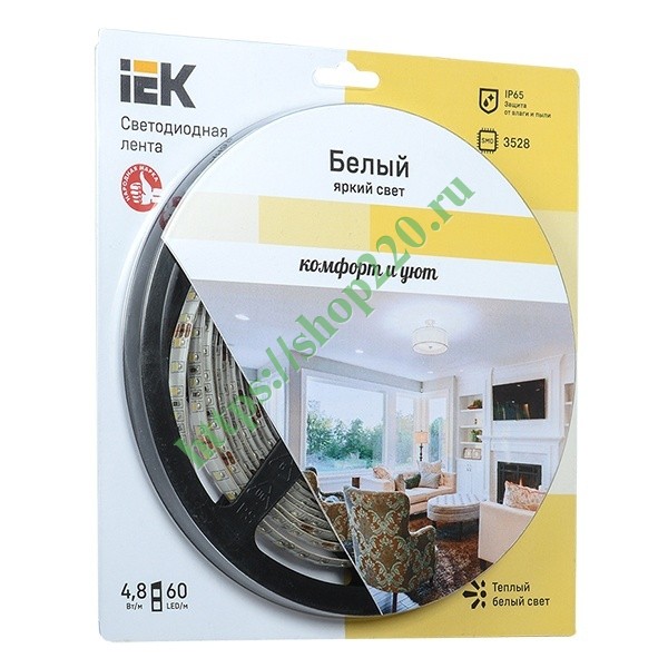 Лента LED 5м блистер LSR-3528WW60-4.8-IP65-12V IEK-eco теплый белый LSR1-1-060-65-1-05