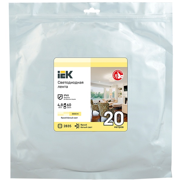 Лента светодиодная, влагозащищенная LSR2835, мощностью 4,8 Ватт на метр, теплый белый свет, длиной 20 метров LSR1-1-060-65-3-20