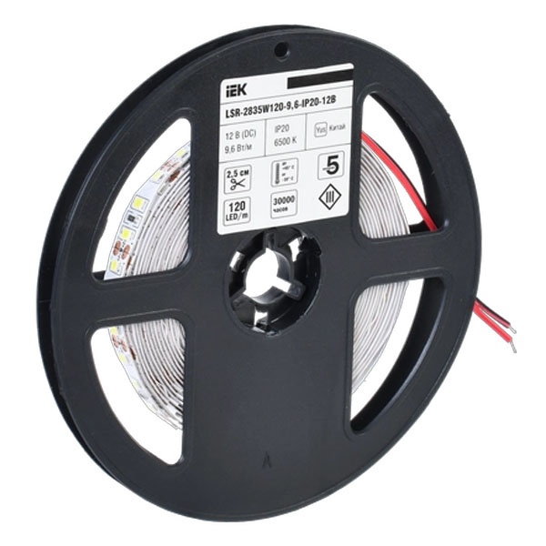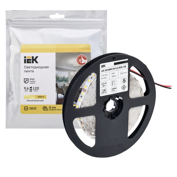 • Лента светодиодная ИЭК LED LSR 2835 WW 120Led/m 9,6W/m 12V IP20 3000K теплый белый (упаковка 5м)