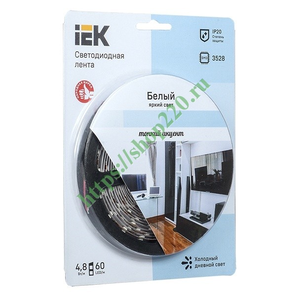 Лента LED 5м блистер LSR-3528W60-4.8-IP20-12V IEK-eco холодный белый LSR1-2-060-20-1-05