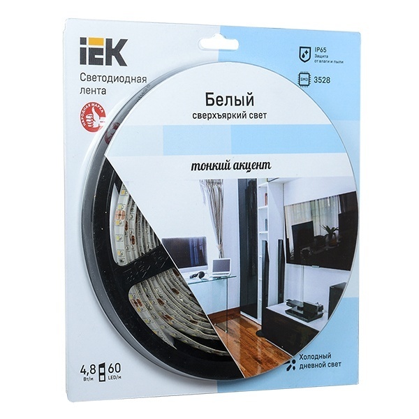 Лента LED 5м блистер LSR-3528W60-4.8-IP65-12V IEK-eco холодный белый LSR1-2-060-65-1-05