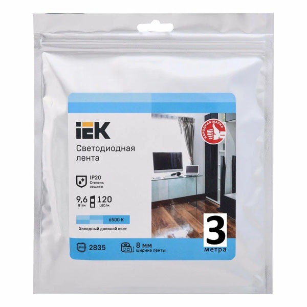 Лента светодиодная LSR2835, мощностью 9,6 Ватт на метр, холодный дневной свет, длиной 3 метра LSR1-2-120-20-3-03