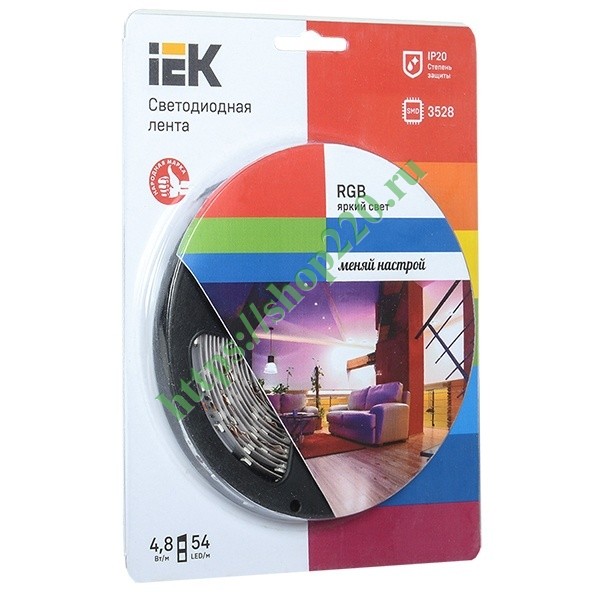 Лента LED 5м блистер LSR-3528RGB54-4.8-IP20-12V IEK-eco LSR1-3-054-20-1-05