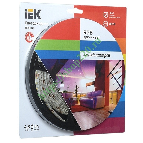 Лента LED 5м блистер LSR-3528RGB54-4.8-IP65-12V IEK-eco LSR1-3-054-65-1-05