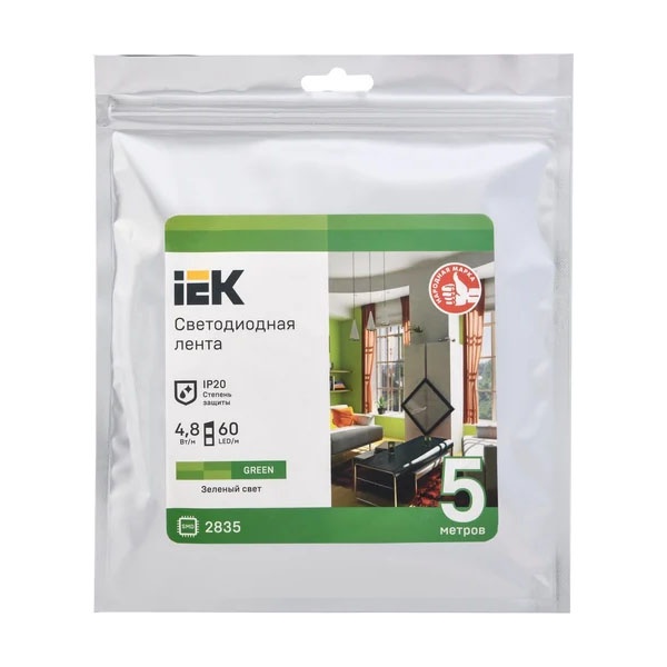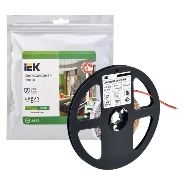 Лента светодиодная LED LSR-2835G60-4.8-IP20-12В (уп.5м) IEK LSR1-5-060-20-3-05