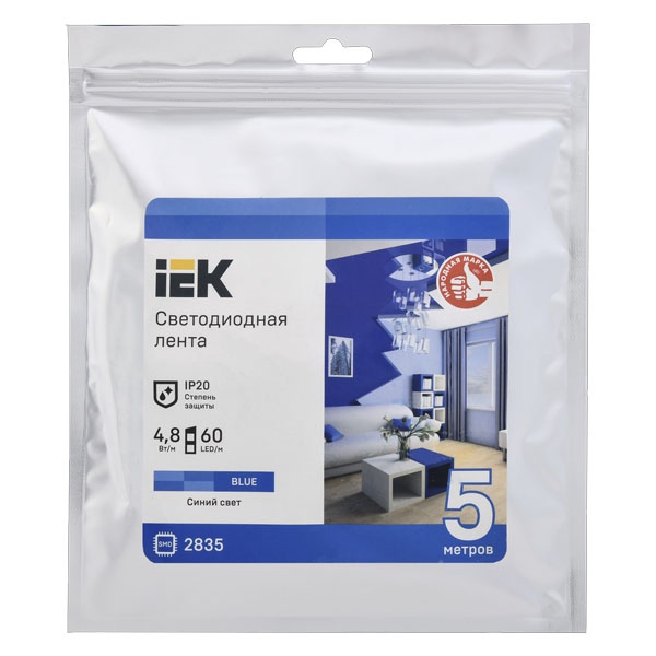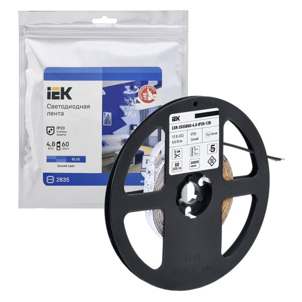 Лента светодиодная LED LSR-2835B60-4.8-IP20-12В (уп.5м) IEK LSR1-7-060-20-3-05