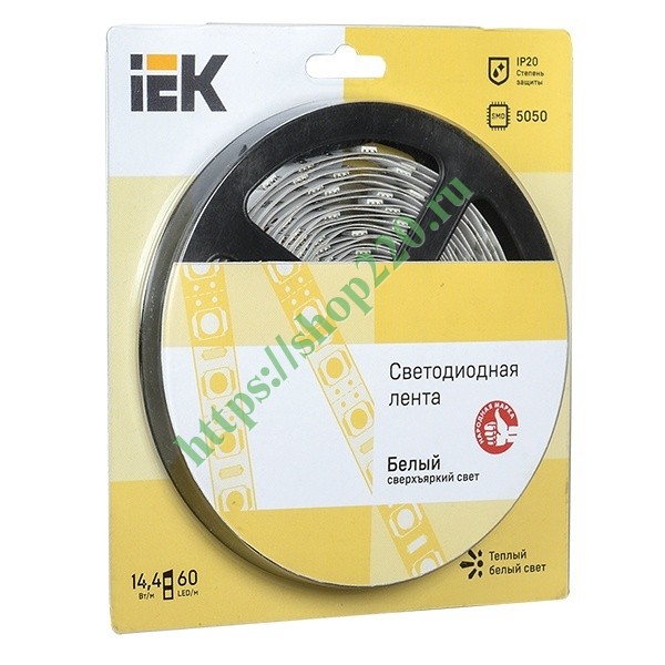 Лента LED 5м блистер LSR-5050WW60-14,4-IP20-12V IEK теплый белый LSR2-1-060-20-1-05