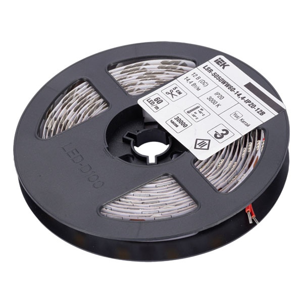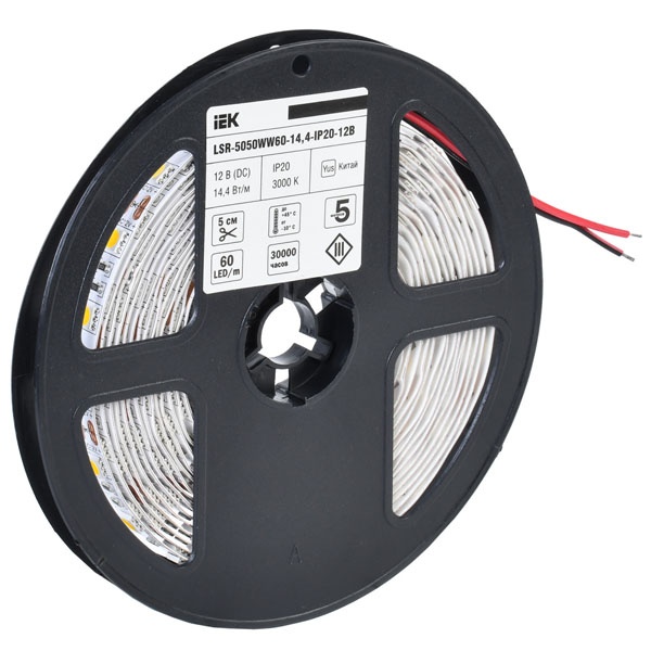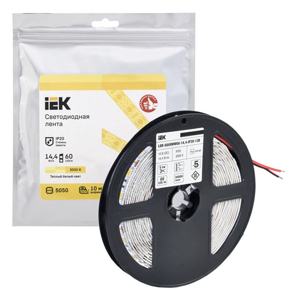 • Лента светодиодная ИЭК LED LSR 5050 WW 60Led/m 14,4W/m 12V IP20 3000K теплый белый (упаковка 5м)