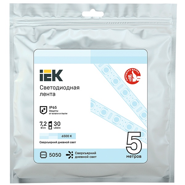 Лента светодиодная, влагозащищенная LSR5050, мощностью 7,2 Ватт на метр, холодный дневной свет, длиной 5 метров LSR2-2-030-65-3-05