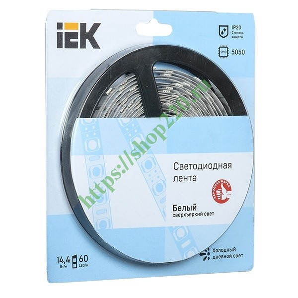 Лента LED 5м блистер LSR-5050W60-14,4-IP20-12V IEK холодный белый LSR2-2-060-20-1-05
