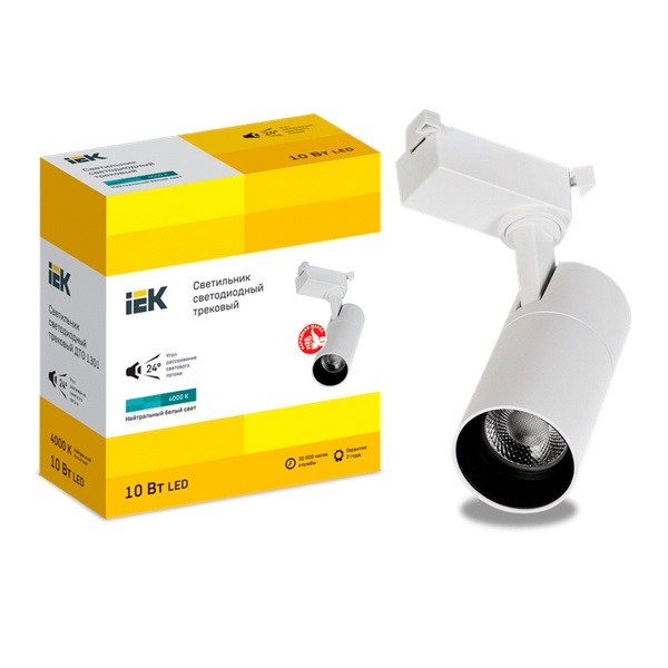 Светодиодный трековый однофазный светильник IEK – это современное решение для организации акцентного и декоративного освещения. Он идеально подходит для коммерческих пространств любого масштаба: от бутиков, торговых залов и гипермаркетов до музеев, галерей и выставочных комплексов. Благодаря стильному дизайну и универсальному исполнению светильник гармонично вписывается и в жилые интерьеры, оформленные в современном стиле.высокая энергоэффективность и долговечность светодиодов;возможность направленного освещения для выделения товаров, экспонатов или интерьерных деталей;простота монтажа и интеграции в существующую систему освещения;компактный корпус, не перегружающий пространство;равномерное распределение света без мерцания.