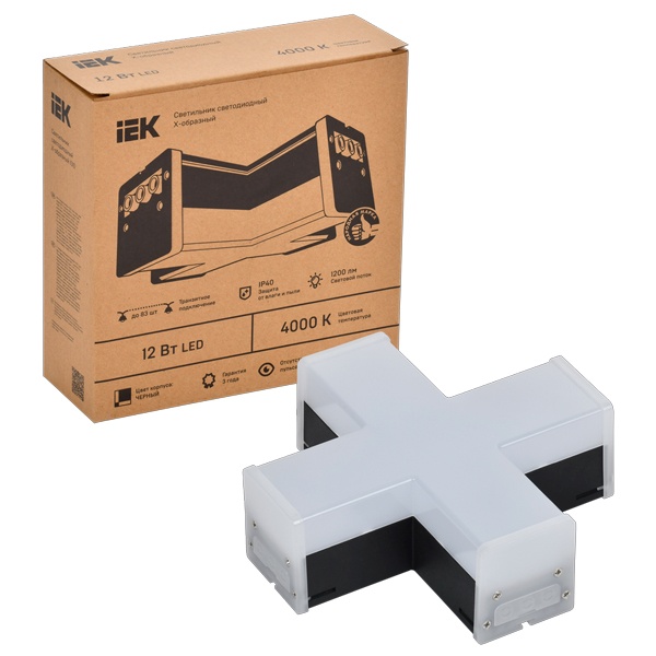 Черный светодиодный крестообразный светильник ИЭК 1010 мощность 12W нейтральный белый свет, магистральное подключение LT-LDCK-X-1010-12-40-K02
