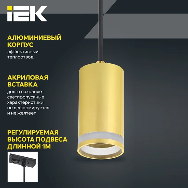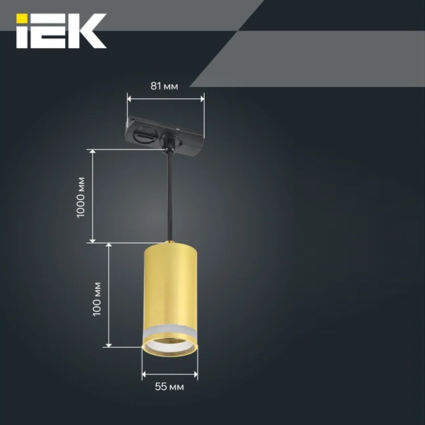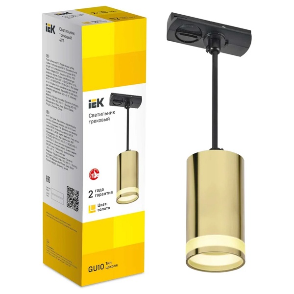 Светильник на подвесе акцентного освещения ламповый на шинопровод ИЭК 4117 под лампу MR16 с цоколем GU10 мощностью до 50 Вт, цвет золото LT-UCB0-4117-GU10-1-K22