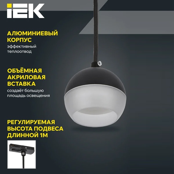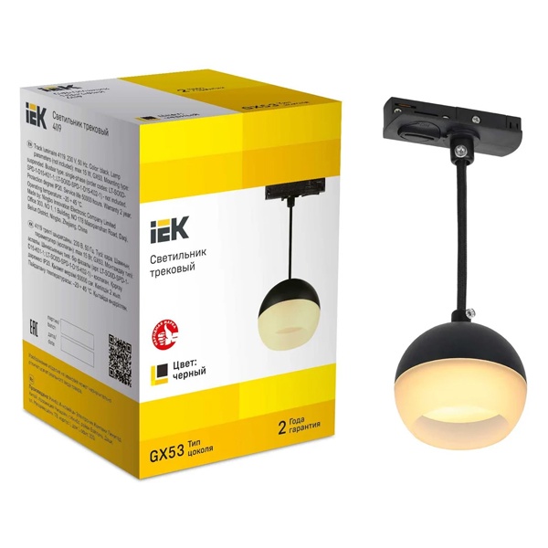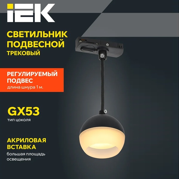 Светильник на подвесе спот акцентного освещения ламповый на шинопровод ИЭК 4119 под лампу с цоколем GX53 мощностью до 15 Вт, цвет черный LT-UCB0-4119-GX53-1-K02