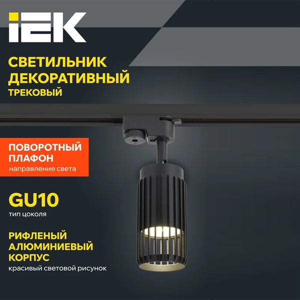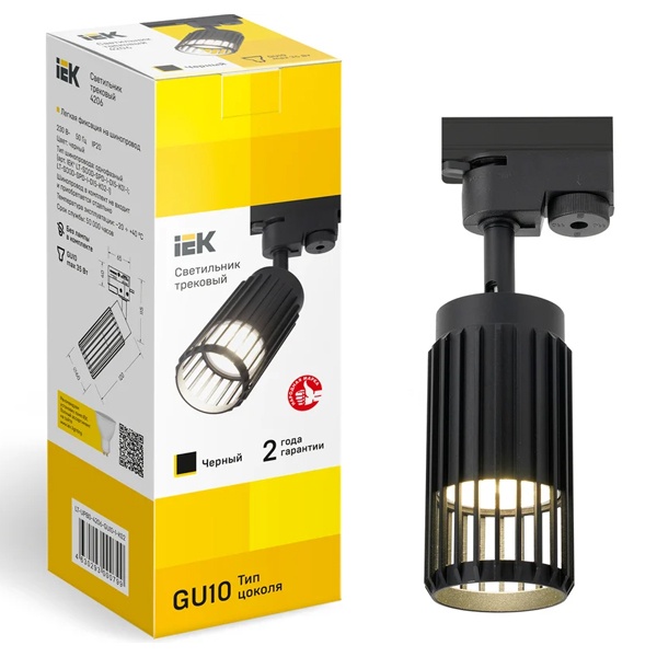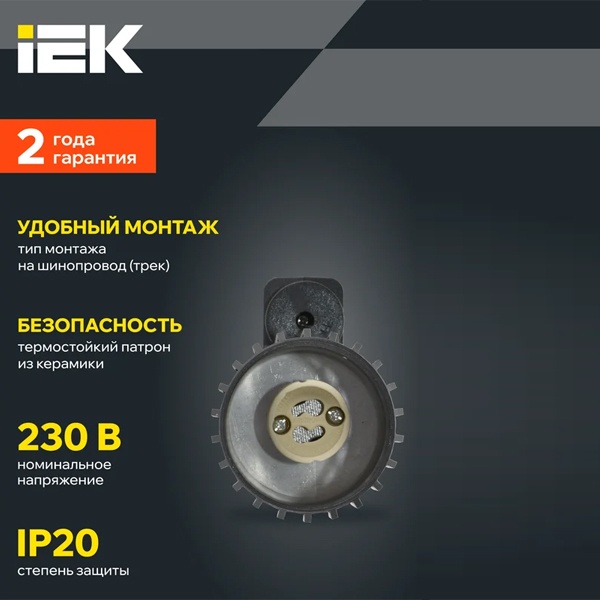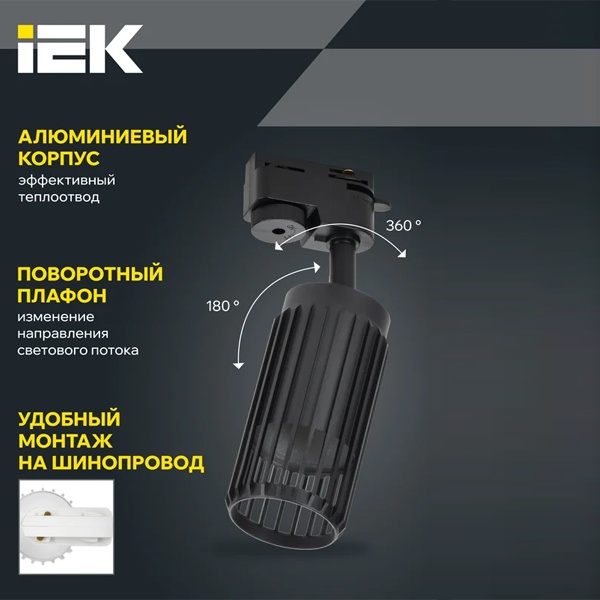 Светильник спот регулируемый акцентного освещения ламповый на шинопровод ИЭК 4206 под лампу MR16 с цоколем GU10 мощностью до 35 Вт, цвет черный LT-UPB0-4206-GU10-1-K02