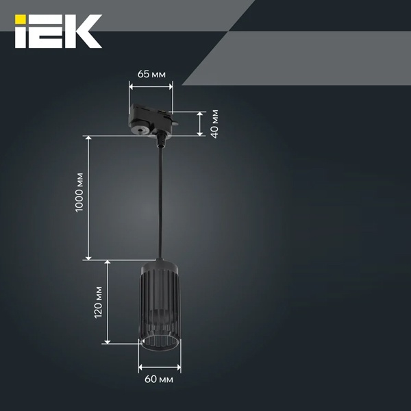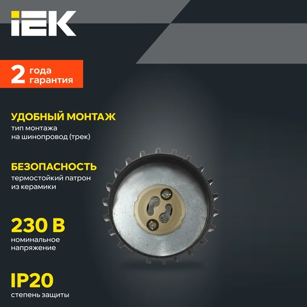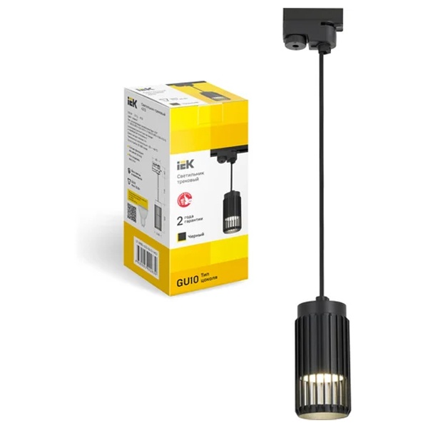 Светильник спот на подвесе акцентного освещения ламповый на шинопровод ИЭК 4213 под лампу MR16 с цоколем GU10 мощностью до 35 Вт, цвет черный LT-UPB0-4213-GU10-1-K02