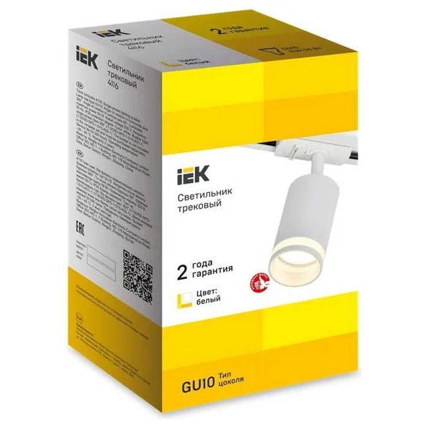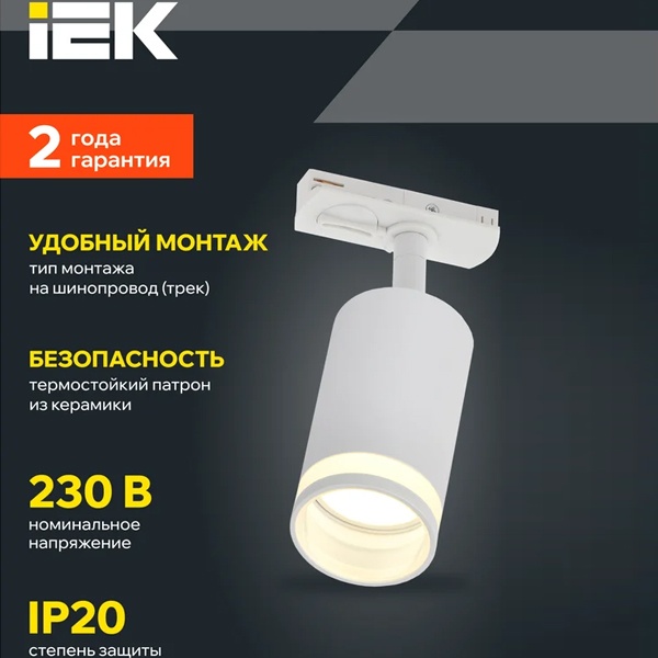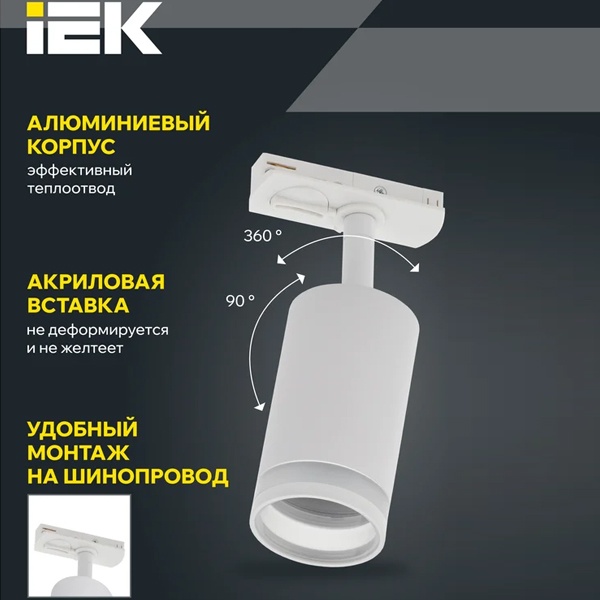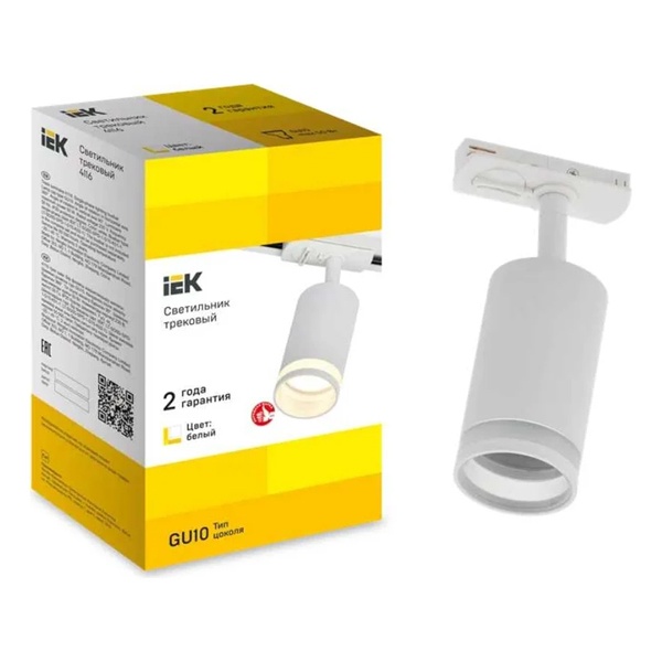 Светильник акцентного освещения ламповый на шинопровод ИЭК 4116 под лампу MR16 с цоколем GU10 мощностью до 50 Вт, цвет белый LT-USB0-4116-GU10-1-K01