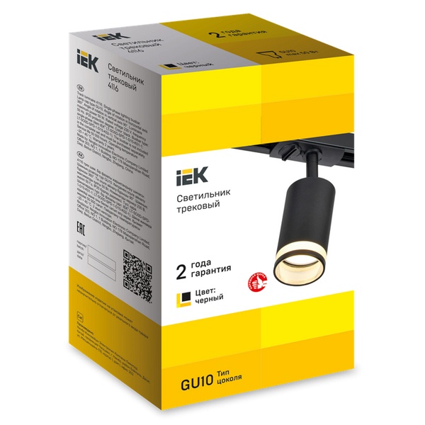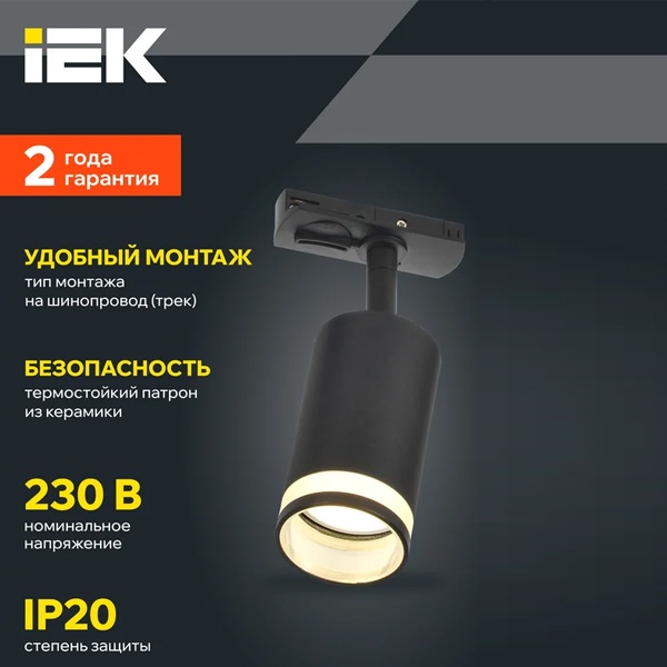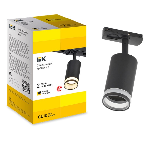 Светильник акцентного освещения ламповый на шинопровод ИЭК 4116 под лампу MR16 с цоколем GU10 мощностью до 50 Вт, цвет черный LT-USB0-4116-GU10-1-K02