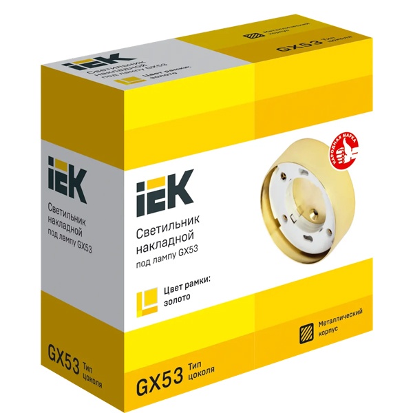 Светильник накладной под лампу GX53 золото IEK LUPB0-GX53-1-K22