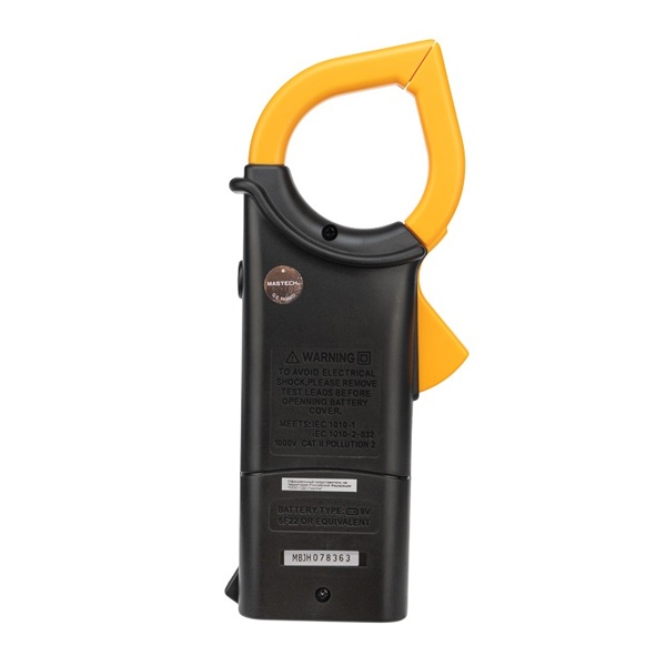 Характеристики Разрядность - 31/2 разрядаПостоянное напряжение U= - 0.2/2/20/200/1000 ВольтПеременное напряжение U~ - 200/750 BольтПеременный ток I~ - 20/200/400 АСопротивление R - 0,2/20/2000 кОмЗвуковой пробник - <50 ОмДиод-тест - естьТемпература - от 0°C до +750°CПитание - 9В, элемент 1604 или 6F22 («Крона»)Раскрыв клещей - 50 ммПамять "HOLD" - естьГабариты - 96х235х46 ммВес (с батареей) - 310 грамм