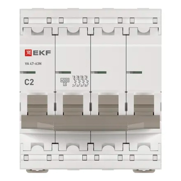 M634402C Автоматический выключатель EKF PROxima ВА 47-63N 2А 4P C 4,5кА (автомат электрический)
