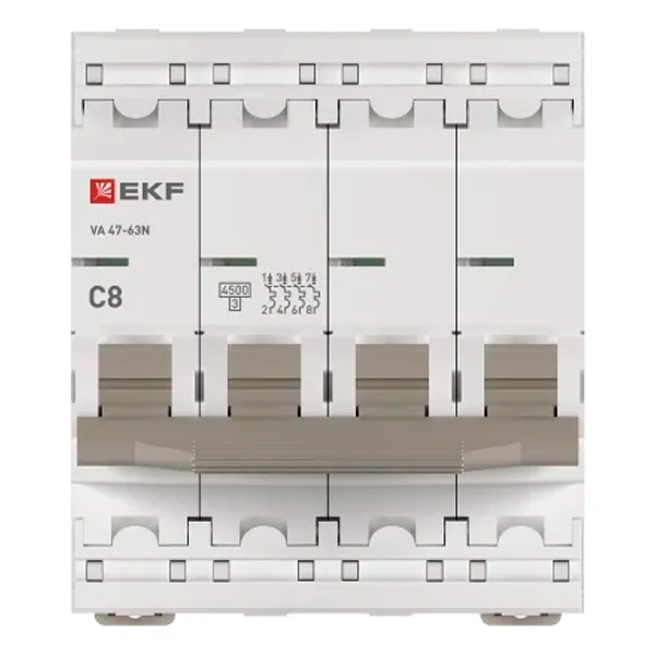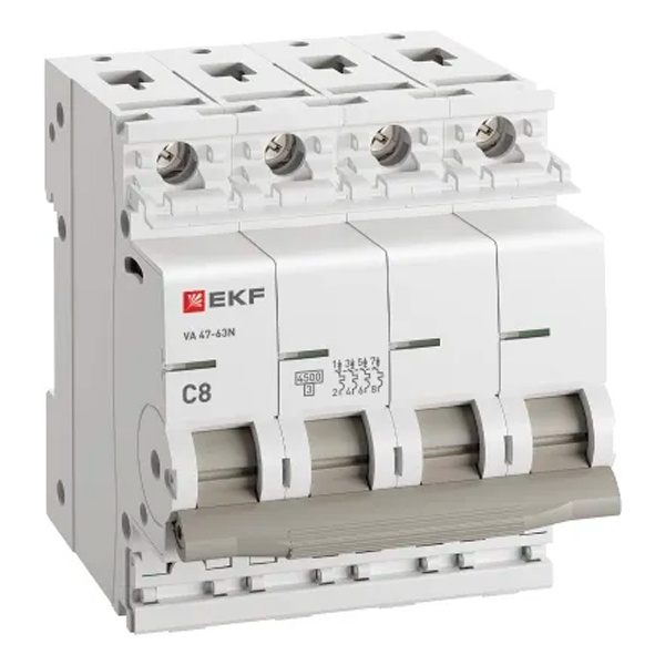 M634408C Автоматический выключатель EKF PROxima ВА 47-63N 8А 4P C 4,5кА (автомат электрический)