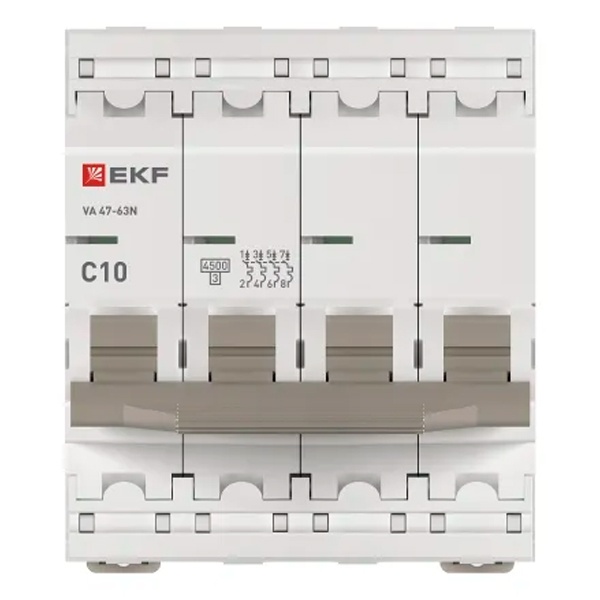 • Автоматический выключатель EKF PROxima ВА 47-63N 10А 4P C 4,5кА (автомат электрический)