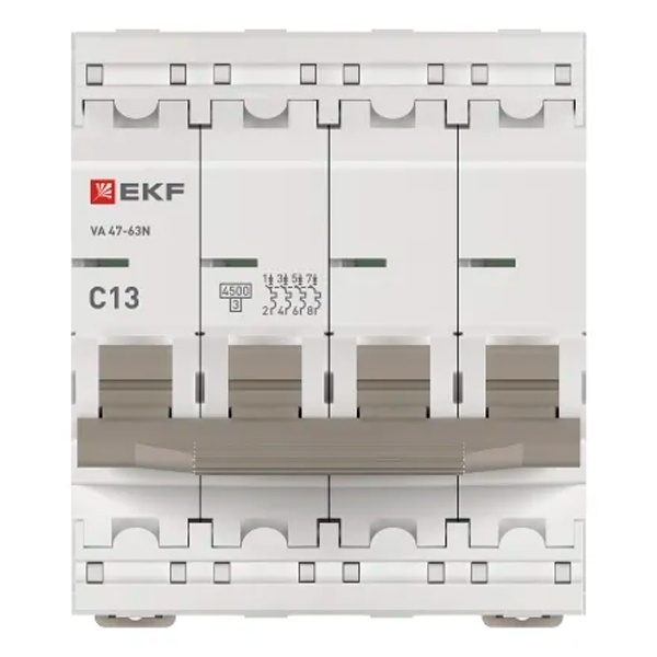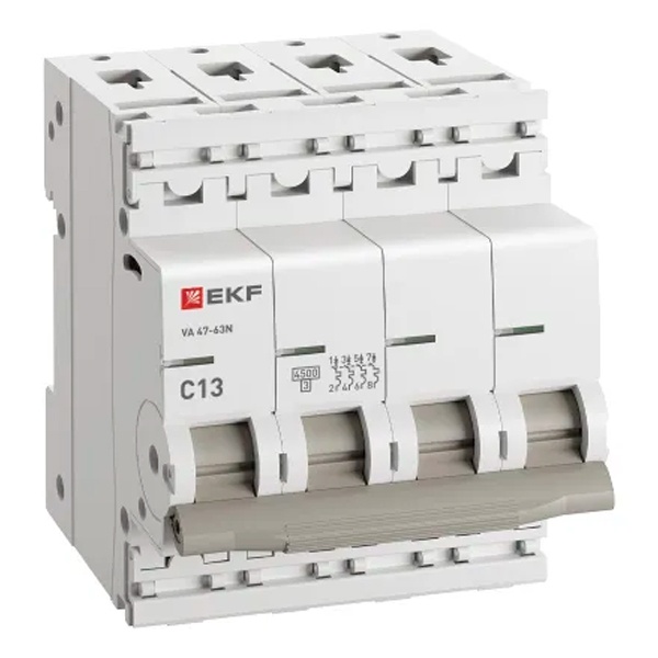Автоматический выключатель EKF PROxima ВА 47-63N 13А 4P C 4,5кА (автомат электрический) M634413C