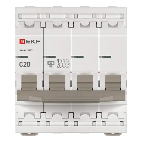 M634420C Автоматический выключатель EKF PROxima ВА 47-63N 20А 4P C 4,5кА (автомат электрический)