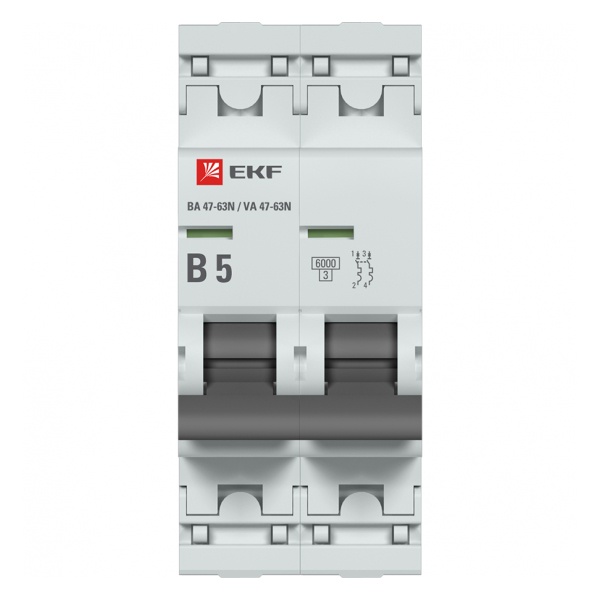 Автоматические выключатели ВА 47-63N компании EKF PROxima являются обновлённой платформой успешно зарекомендовавших себя на рынке линейки автоматических выключателей ВА 47-63 EKF PROxima. Устройства являются механическими коммутационными аппаратами и соответствуют ГОСТ IEC 60898-1.Предназначен для управления нагрузкой, разъединения электрических цепей и их защиты от перегрузки и короткого замыкания. Такой прибор можно встретить в распределительных щитах многоквартирных или частных домов, а также в местах общественного назначения. Его основная функция состоит в обеспечении бесперебойной работы оборудования, находящегося под постоянной нагрузкой. Главным отличием автомата данной серии является усовершенствованная конструкция. Защитные пластиковые крышки на клеммах закрывают доступ к винтовым зажимам и служат для опломбировки, и предотвращают несанкционированный доступ к вводам. Устройство оснащено двумя полюсами и обладает отключающей возможностью 6 килоампер. Оно работает в сети переменного тока напряжением 230/400 Вольт и рассчитано на номинальную нагрузку тока 5 Ампер. Аппарат с характеристикой типа B имеет высокую чувствительность при коротком замыкание и рекомендован для защиты цепей большой протяженности, к которым подключены розетки или приборы освещения. Его корпус изготовлен из самозатухающего термостойкого полиэфира и усилен дополнительными заклепками для устранения эффекта расхождения корпуса. Лицевая панель оснащена цветовым индикатором состояния устройства. Управление осуществляется удобной рукояткой с двумя положениями: I/O (включено/отключено). Конструкция установочного зажима обеспечивает свободную установку выключателя на DIN-рейку. Механическая износостойкость составляет 20000 циклов, коммутационная – 10000 циклов. Габариты автомата: 36х87,5х74,5 мм.