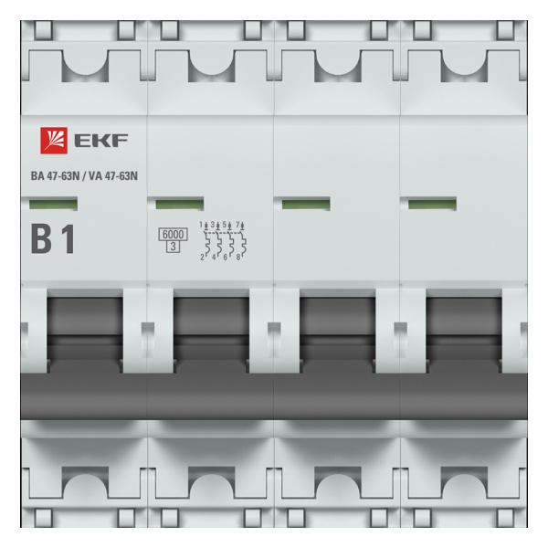 Автоматические выключатели ВА 47-63N компании EKF PROxima являются обновлённой платформой успешно зарекомендовавших себя на рынке линейки автоматических выключателей ВА 47-63 EKF PROxima. Устройства являются механическими коммутационными аппаратами и соответствуют ГОСТ IEC 60898-1.Предназначен для управления нагрузкой, разъединения электрических цепей и их защиты от перегрузки и короткого замыкания. Такой прибор можно встретить в распределительных щитах многоквартирных или частных домов, а также в местах общественного назначения. Его основная функция состоит в обеспечении бесперебойной работы оборудования, находящегося под постоянной нагрузкой. Главным отличием автомата данной серии является усовершенствованная конструкция. Защитные пластиковые крышки на клеммах закрывают доступ к винтовым зажимам и служат для опломбировки, и предотвращают несанкционированный доступ к вводам. Устройство имеет четыре полюса и обладает отключающей возможностью 6 килоампер. Оно работает в сети переменного тока напряжением 400 Вольт и рассчитано на номинальную нагрузку тока 1 Ампер. Аппарат с характеристикой типа B имеет высокую чувствительность при коротком замыкание и рекомендован для защиты цепей большой протяженности, к которым подключены розетки или приборы освещения. Его корпус изготовлен из самозатухающего термостойкого полиэфира и усилен дополнительными заклепками для устранения эффекта расхождения корпуса. Лицевая панель оснащена цветовым индикатором состояния устройства. Управление осуществляется удобной рукояткой с двумя положениями: I/O (включено/отключено). Конструкция установочного зажима обеспечивает свободную установку выключателя на DIN-рейку. Механическая износостойкость составляет 20000 циклов, электрическая износостойкость – 10000 циклов. Размеры устройства: 72х87,5х74,5 мм.