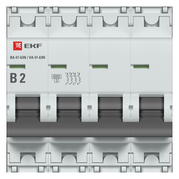 Автоматические выключатели ВА 47-63N компании EKF PROxima являются обновлённой платформой успешно зарекомендовавших себя на рынке линейки автоматических выключателей ВА 47-63 EKF PROxima. Устройства являются механическими коммутационными аппаратами и соответствуют ГОСТ IEC 60898-1.Предназначен для управления нагрузкой, разъединения электрических цепей и их защиты от перегрузки и короткого замыкания. Такой прибор можно встретить в распределительных щитах многоквартирных или частных домов, а также в местах общественного назначения. Его основная функция состоит в обеспечении бесперебойной работы оборудования, находящегося под постоянной нагрузкой. Главным отличием автомата данной серии является усовершенствованная конструкция. Защитные пластиковые крышки на клеммах закрывают доступ к винтовым зажимам и служат для опломбировки, и предотвращают несанкционированный доступ к вводам. Устройство имеет четыре полюса и обладает отключающей возможностью 6 килоампер. Оно работает в сети переменного тока напряжением 400 Вольт и рассчитано на номинальную нагрузку тока 2 Ампера. Аппарат с характеристикой типа B имеет высокую чувствительность при коротком замыкание и рекомендован для защиты цепей большой протяженности, к которым подключены розетки или приборы освещения. Его корпус изготовлен из самозатухающего термостойкого полиэфира и усилен дополнительными заклепками для устранения эффекта расхождения корпуса. Лицевая панель оснащена цветовым индикатором состояния устройства. Управление осуществляется удобной рукояткой с двумя положениями: I/O (включено/отключено). Конструкция установочного зажима обеспечивает свободную установку выключателя на DIN-рейку. Механическая износостойкость составляет 20000 циклов, электрическая износостойкость – 10000 циклов. Размеры устройства: 72х87,5х74,5 мм.