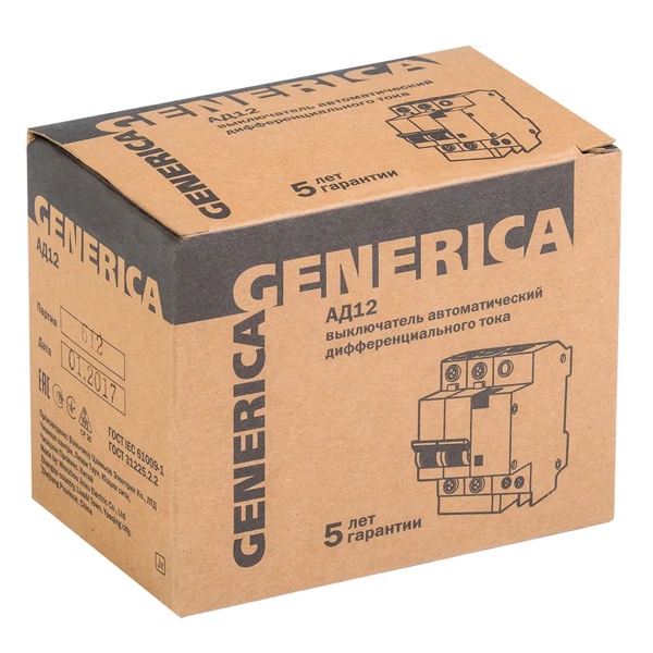 Дифференциальный автоматический выключатель класса АС серии GENERICA от производителя ИЭК представляет собой устройство со встроенной защитой от сверхтоков, которое используется в однофазных электросетях переменного тока с частотой 50 Герц и напряжением до 230 Вольт. Агрегат выполняет защитную функцию и обеспечивает 3 типа защиты: от короткого замыкания, перегрузок и утечки тока. Принцип действия: обнаружение дифференциального тока, сравнение с током срабатывания и отключение защищаемой цепи при превышении заданного значения. Данная модель рассчитана на токовую нагрузку 32 Ампера и обладает чувствительностью в 100 милиампер. Она создана для предотвращения причин возникновения пожаров из-за нарушений в электропроводке. Дифавтомат обладает высокой отключающей способностью в 4500 Ампера и уставкой типа C. Компактный прибор с 2-мя защищенными полюсами 2Р крепится на DIN-рейку. На лицевой части есть тестовая кнопка для периодической проверки работоспособности дифавтомата, а также рукоятка управления с 2-мя позициями и кнопкой «Возврат», служащей индикатором срабатывания по дифференциальному току. Аппарат класса АС защищает только от синусоидальных переменных токов утечки и применяется для типовых нагрузок. Областью применения выступают распределительные щиты и силовые установки на объектах гражданского строительства. Габаритные параметры: ширина – 62,6 мм, высота – 87 мм, глубина – 78 мм.