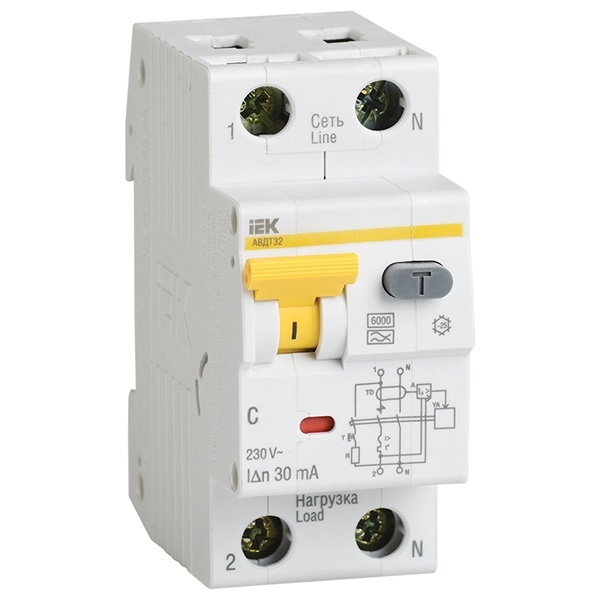 Дифференциальный автомат IEK АВДТ32 C25А 1П+Н 30мА тип A однофазный электронный 6кА — комбинированный защитный аппарат (дифавтомат, АВДТ), который объединяет функции автоматического выключателя и устройства защитного отключения. Он предназначен для защиты однофазных линий 230 В от перегрузки и короткого замыкания, а также от токов утечки на землю, которые могут привести к поражению электрическим током и возгоранию изоляции.