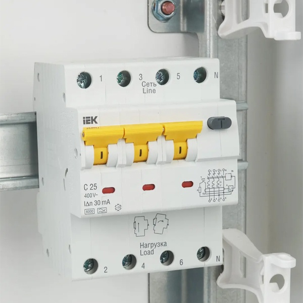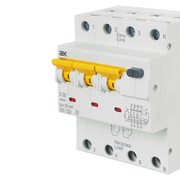 Когда в щите нужно закрыть сразу две задачи — защитить линию от перегрузки/короткого замыкания и от утечек тока — проще поставить один нормальный дифавтомат, чем городить связку из автомата и УЗО. IEK АВДТ34 на 25 А как раз из таких рабочих решений: трехфазный, с нейтралью, с чувствительностью 30 мА и типом А.