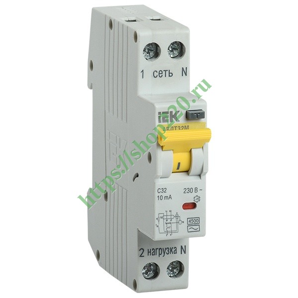 Дифференциальные автоматы двухполюсные одномодульные АВДТ32М тип АС 4,5кА IEK