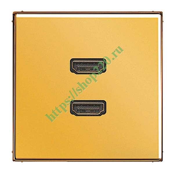 Розетка HDMI (с несущей платой, монтаж только шурупами) 2 местная, имитация золота, металлическое исполнение Jung MAGO1133
