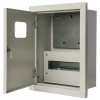 Компактный учетно-распределительный шкаф ЩУРв от производителя EKF серии PROxima предназначен для ввода, учета и распределения электроэнергии на основе модульного оборудования и электросчетчиков, а также для защиты сетей от токов перегрузки и короткого замыкания. Он представляет собой конструкцию встраиваемой установки, выполненную из прочной листовой стали толщиной 0.8 мм сварным методом. Данная модель монтируется в специально подготовленную нишу в кирпичной или бетонной стене и рассчитана на монтаж 12 модульных устройств с номинальной величиной тока не более 125 Ампер. Установка аппаратуры производится на DIN-рейку, которая входит в комплект поставки. Также внутреннее пространство оснащено стальной монтажной панелью размером 170х183 мм, на которую крепится однофазный электросчетчик. Степень защиты от попадания влаги и пыли внутрь корпуса составляет IP31.