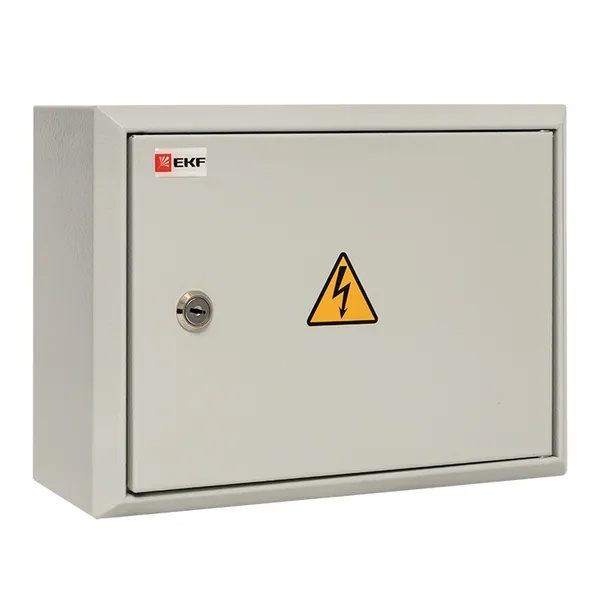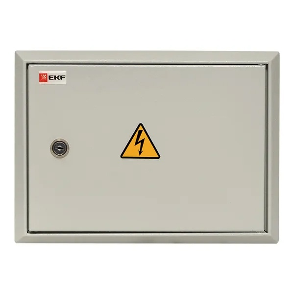 Компактный распределительный щит ЩРН от производителя EKF серии PROxima предназначен для размещения модульного оборудования при сборки щитов распределения электроэнергии и защиты сетей от токов перегрузки и короткого замыкания. Он представляет собой конструкцию настенной установки, выполненную из стали толщиной 1 мм. Данная модель бокса рассчитана на монтаж модульных устройств до 12 модулей на DIN-рейке, которая входит в комплект поставки. Номинальное значение токовой нагрузки не должно превышать 125 Ампер. Степень защиты от попадания влаги и пыли внутрь корпуса составляет IP31. Покрытие оболочки в виде порошковой краски светло-серого цвета RAL 7035 обладает антикоррозийным эффектом.