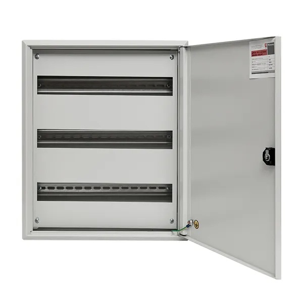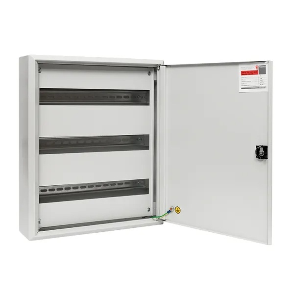 В комплект поставки входит 3 DIN-рейки, на которые производится установка устройств. Подключение кабеля осуществляется снизу сквозь имеющиеся кабельные вводы. Особенностью шкафа является наличие сплошной двери, которая запирается на пластиковый замок, входящий в комплект поставки. Также туда входит монтажный комплект, знаки электробезопасности и поводок заземления. Распределительный щит практичен в эксплуатации и может размещаться только внутри зданий. Сферой использования выступает жилой, коммерческий и промышленный сектор.