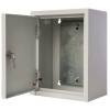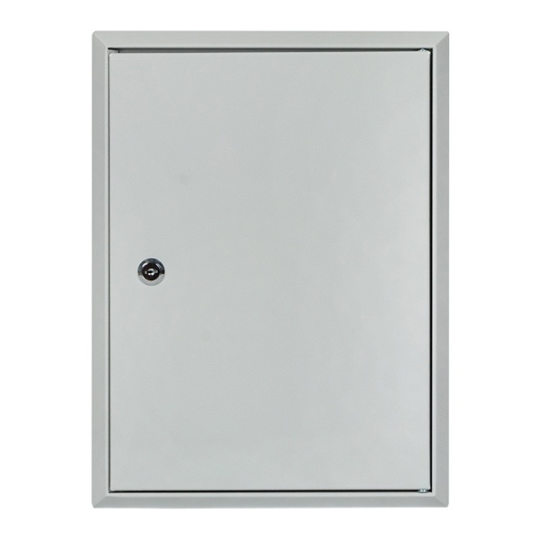Монтажный щит ЩМП известного производителя EKF относится к серии корпусов Basic и представляет собой функциональный аналог шкафов PROxima. Это доступный вариант в базовой комплектации, который не рассчитан на эксплуатацию при высоких нагрузках. Внешне это пустая оболочка, изготовленная сварным методом из стали толщиной 1 мм. Ее предназначение состоит в дальнейшей сборке электрощитов управления, автоматизации и распределения энергии. Предельная нагрузка встраиваемого силового или модульного оборудования не должна превышать 125 Ампер при допустимом напряжении сети 230-400 Вольт. Оболочка электрощита имеет навесной тип установки и покрытие светло-серого цвета RAL 7035 в виде атмосферостойкой порошковой краски. Дверь из металла сплошного типа имеет угол открывания 120 градусов и запирается на почтовый замок. Вся конструкция обладает степенью защиты от попадания пыли и влаги IP31. Внутреннее пространство корпуса оснащено съемной монтажной панелью, которая ускоряет процесс установки аппаратуры. Она выполнена из оцинкованной стали и имеет размер 222х142 мм.
