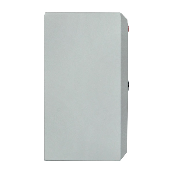 Металлический щит с дверцей сплошного типа запирается на почтовый замок, который защищает от несанкционированного доступа. Подвод кабелей производится снизу через имеющиеся отверстия на корпусе. Для удобства настенной установки на обратной стороне есть специальные монтажные отверстия. В комплект поставки входит монтажный набор креплений, поводок заземления и знаки электробезопасности.