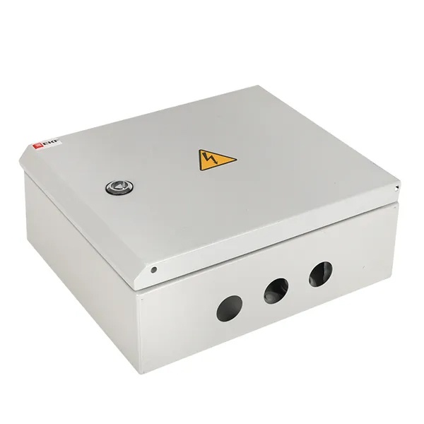 Организация кабельного ввода осуществляется снизу корпуса сквозь выштампованные отверстия, которые оснащены сальниками, входящими в комплект поставки. Конструкция щита имеет скошенный желоб для дополнительной защиты от попадания влаги и пыли. В упаковку также входит монтажный набор креплений, знаки электробезопасности, поводок заземления и маркировочная таблица.