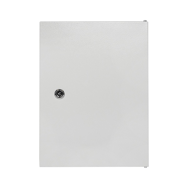 Монтажный щит ЩМП известного производителя EKF относится к серии корпусов Basic и представляет собой функциональный аналог шкафов PROxima. Это доступный вариант в базовой комплектации, который не рассчитан на эксплуатацию при высоких нагрузках. Внешне это пустая оболочка, изготовленная сварным методом из стали толщиной 1 мм. Ее предназначение состоит в дальнейшей сборке электрощитов управления, автоматизации и распределения энергии. Предельная нагрузка встраиваемого силового или модульного оборудования не должна превышать 125 Ампер при допустимом напряжении сети 230-400 Вольт. Оболочка электрощита имеет навесной тип установки и покрытие светло-серого цвета RAL 7035 в виде атмосферостойкой порошковой краски. Дверь из металла сплошного типа имеет угол открывания 120 градусов и запирается на почтовый замок. Вся конструкция является герметичной с надежной степенью защиты от попадания пыли и влаги IP54. Внутреннее пространство корпуса оснащено съемной монтажной панелью, которая ускоряет процесс установки аппаратуры. Она выполнена из оцинкованной стали и имеет размер 602х432 мм.