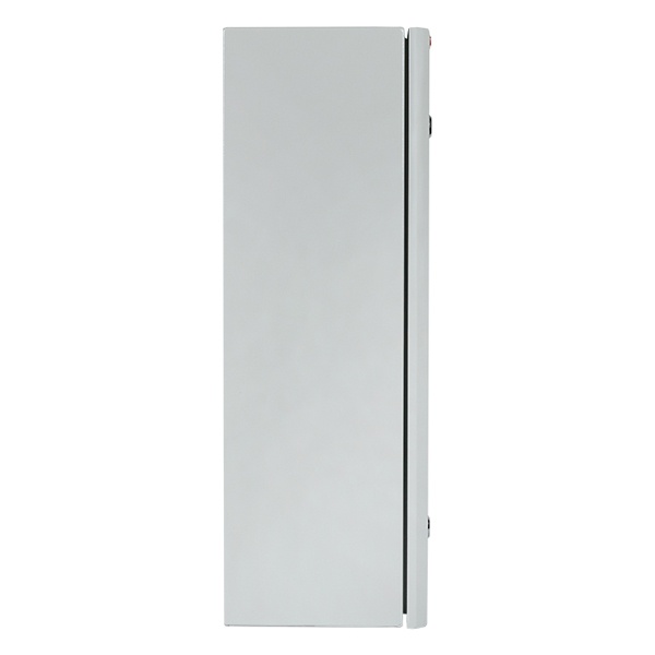 Среди всех требований, предъявляемых к конструкции щита, немаловажным является обеспечение защиты персонала от поражения электрическим током и целостности оборудования от механических повреждений. Поэтому корпус из листовой стали толщиной 1.5 мм имеет серьезную степень защиты IP54. На двери сплошного типа установлены усиленные петли и присутствует герметичный уплотнитель с пылевлагозащищенным замком. Модель также оснащена скошенным желобом, который не допускает попадания влаги и грязи внутрь щита. Антикоррозийное покрытие в виде порошковой краски светло-серого цвета RAL 7035 обеспечивает его долговечную службу и позволяет размещать корпус на открытом пространстве. Подвод кабеля производится снизу сквозь имеющиеся отверстия. В комплект поставки входят сальники для герметизации кабельного ввода, знаки электробезопасности, замок-треугольник и пластины для навесного монтажа.