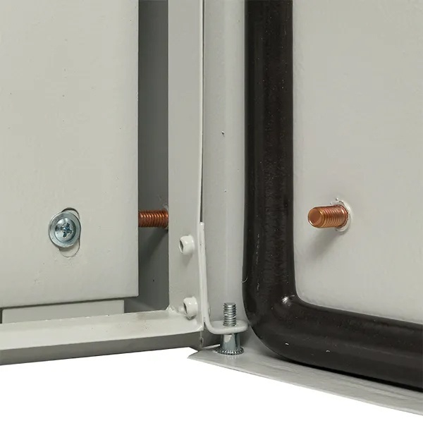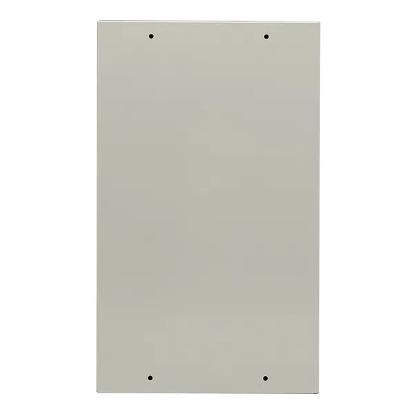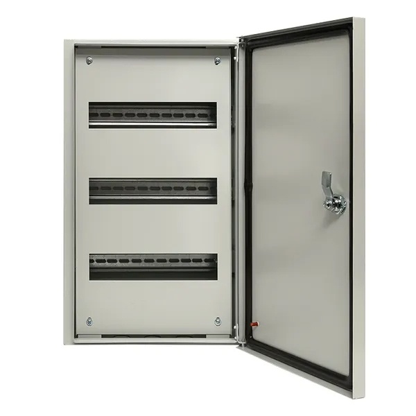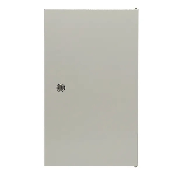 Дверь сплошного типа с углом открывания 120 градусов запирается на замок-треугольник, чем обеспечивает защиту от несанкционированного доступа. Подключение кабеля производится снизу сквозь имеющиеся кабельные вводы. Распределительный щит используется для размещения на открытом воздухе под навесом в жилых секторах, офисах и производственных цехах.