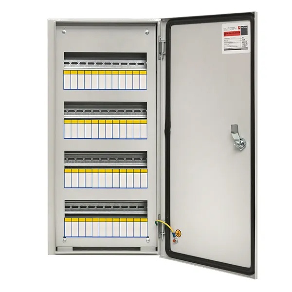 Распределительный бокс ЩРН серии PROxima от известной компании EKF представляет собой компактную конструкцию настенной установки, служащую оболочкой для сборки различного модульного оборудования, устройств управления, таймеров и УЗО. Сфера применения такого шкафа разнообразна: от жилых и офисных помещений до производственных цехов, подвалов и промышленных секторов. С его помощью обеспечивается защита сетей от коротких замыканий или токовых перегрузок, а также осуществляется дальнейшая сборка пунктов распределения электроэнергии. Щит оснащен сплошной дверью для защиты от несанкционированного доступа. Дверь с углом открывания 120 градусов запирается на замок-треугольник, идущий в комплекте. Материалом изготовления конструкции служит прочная листовая сталь толщиной 1 мм, обеспечивающая степень влаго- и пылезащиты IP54. Внутреннее пространство корпуса оснащено 4-мя DIN-рейками, на которые монтируется модульное оборудование в количестве 48 единиц: 12 модулей в 4 ряда с номинальным значением тока до 125 Ампер.
