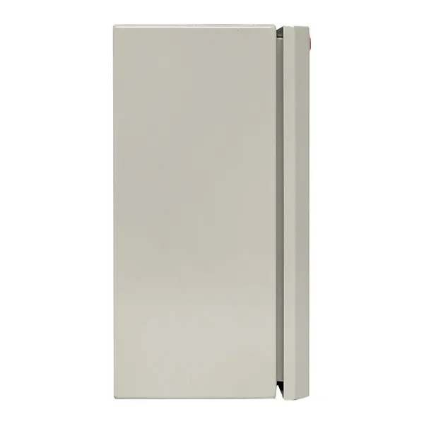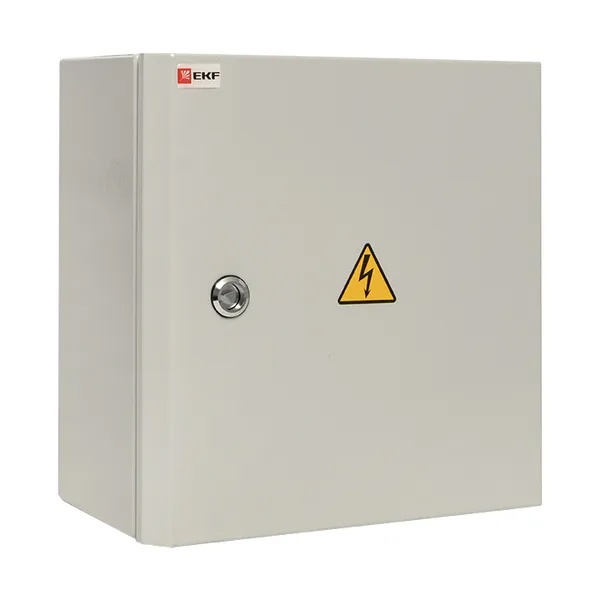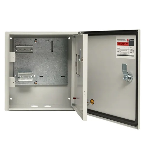 Металлический корпус ЩУ от производителя EKF серии PROxima предназначен для сборки учетно-распределительных электрощитов на основе счетчиков и модульного оборудования. С его помощью производится ввод и учет электроэнергии. Он представляет собой герметичную конструкцию наружной установки, выполненную из листовой стали толщиной 1.2 мм с покрытием в виде атмосферостойкой порошковой краски светло-серого цвета RAL 7035. Надежная степень защиты IP54 не допускает попадания внутрь шкафа пыли и влаги. Для этого с внутренней стороны по периметру двери имеется герметичный уплотнитель и сальники на отверстиях для подвода кабеля снизу корпуса. Особенностью модели является наличие двух дверей, запирающихся на замок. Первая дверь сплошного типа обеспечивает защиту, а вторая имеет прозрачное окно для снятия показаний счетчика, который устанавливается на специальную панель размером 200х230 мм. Также внутреннее пространство корпуса рассчитано на установку устройств шириной 4 модуля в 2 ряда. Вмонтированное оборудование допускает токовую нагрузку до 125 Ампер при напряжении сети 230-400 Вольт.